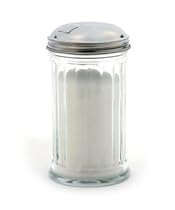 These sugar dispensers have that retro diner look and classic appeal. Made of solid glass with a stainless steel lid they will stand up to the everyday abuses of commercial use. Not only are they tough they're dishwasher safe - making them ideal for restaurants. Just add a Perforated Shaker Lid to turn it into a fantastic cheese or red pepper shaker! In stock and ready to ship. Features: Made of glass. Stainless steel screw on lid with flip cap. Can also be used with grated cheese. Dishwasher safe. . Specs: Dimensions: 3"W x 5 1/2"H. Capacity: 12 oz. .